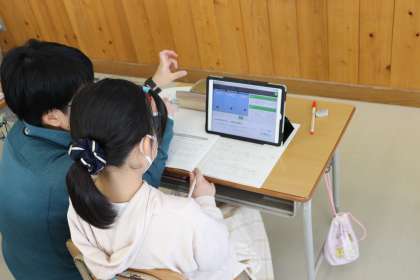 1限、ひかり学級高学年は理科「ふりこの運動」の学習をしていました。追求課題は「◎同じ振り子の場合、振れ幅が変わっても振り子が1往復する時間はいつも同じか?」でした。予想を立ててから動画で実験の結果を視聴しました。さらに実際に実験道具で確かめることもやってみました。