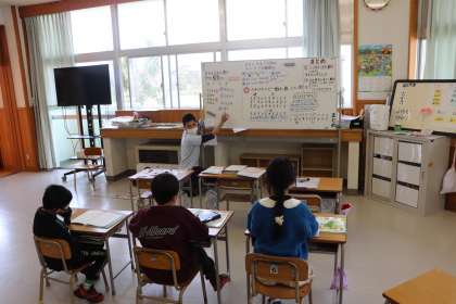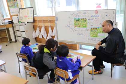 ひかり学級低学年は国語の学習。教科書の絵を見ながら、様々な言葉を見つけていました。
