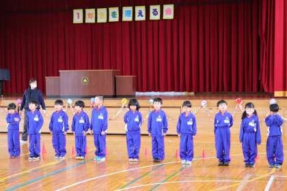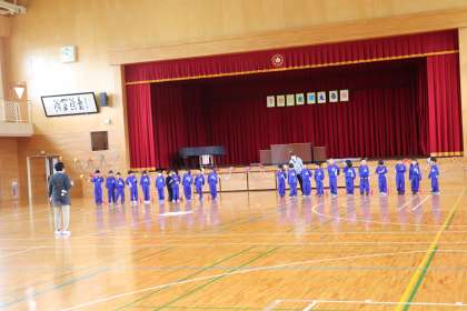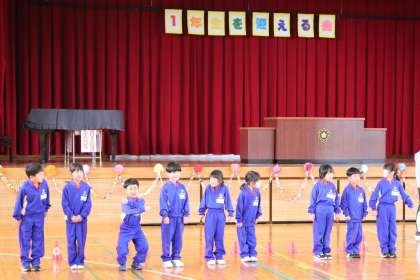 2限、1年生は明日に迫った「1年生を迎える会」の練習をやっていました。