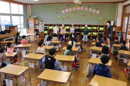 今日、1年教室ではお掃除してくれたお兄さんお姉さんに向かって「ありがとうございました!」とお礼を言う1年生の姿がありました。