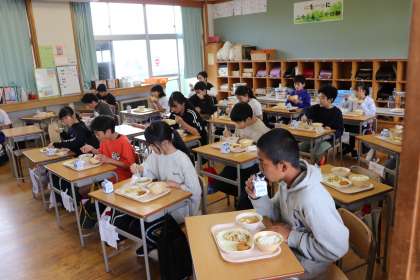 おおまき小学校では、これまで通りに感染症対策を取りながら給食指導を行っていきます。