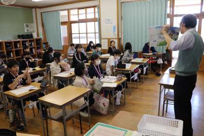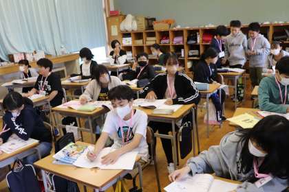 児童は、次回の自己紹介発表に向けて、単語を調べて覚えていました。