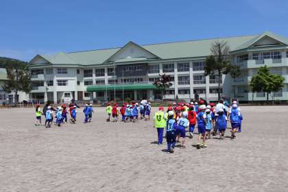 3限、1年〜3年は、グラウンドで下学年リレーの練習でした。