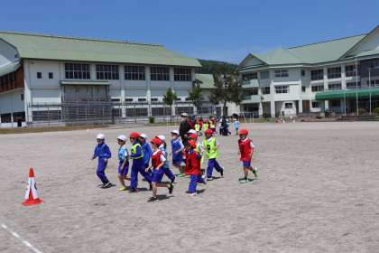 入場練習では、並び方、走り方、進み方を覚えていました。
