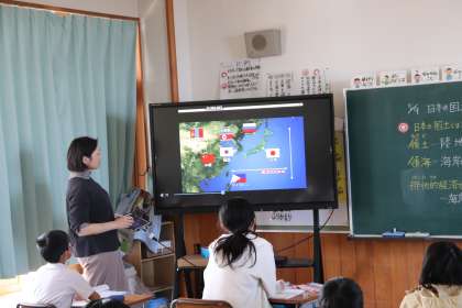 地図帳や動画を見て、日本の領土の範囲を確認していました。