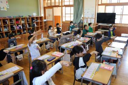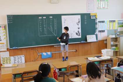 まずは、漢字練習をやり、その後「たんぽぽのひみつ」で「◎たんぽぽのくきのようすは?」について追求していました。
