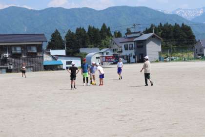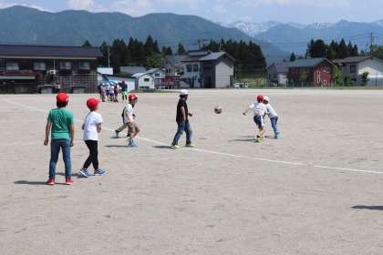昼休み、グラウンドでサッカーをしている児童もたくさんいました。