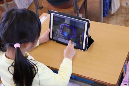 教室に戻り、画像に日にちを自分の手で書き込んで保存していました。
