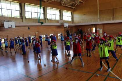 チェッコリダンスを2年生の踊りを見て、一緒にやってみました。