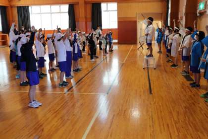 白組は、第1応援歌、オリジナル応援歌、三三七拍子、エールの練習をしていました。