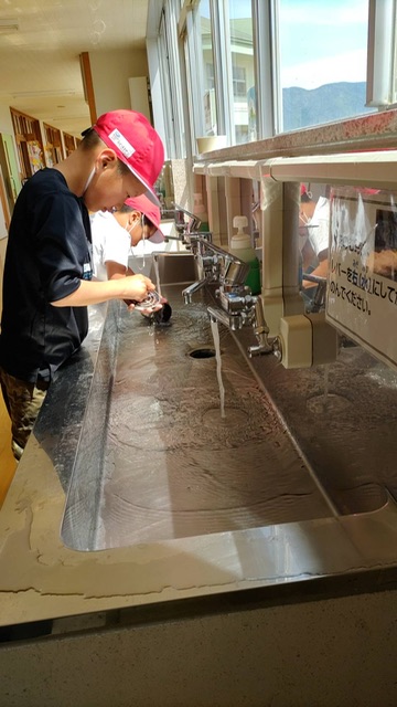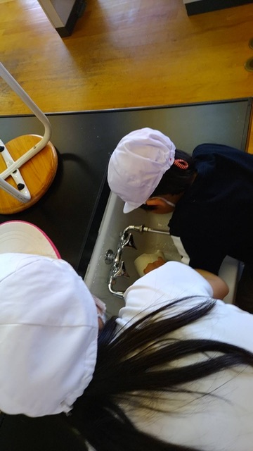 今日の2階理科室・水飲み場のお掃除の様子です。