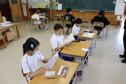 3限、ひかり学級中学年は、国語「走れ」の学習でした。音読を何度も練習していました。