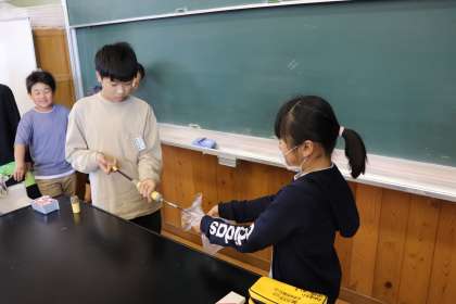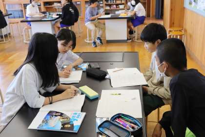 話し合う中で、「人は空気を吸ったりはき出したりすることで、空気中の酸素の一部を取り入れ、二酸化炭素を出している」ということに気づきました。