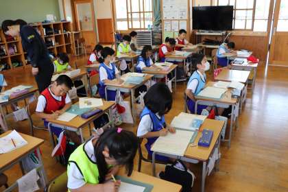 児童は、教科書の記述をもとに自分の考えをノートに書き、積極的に発表していました。