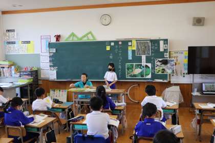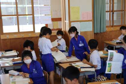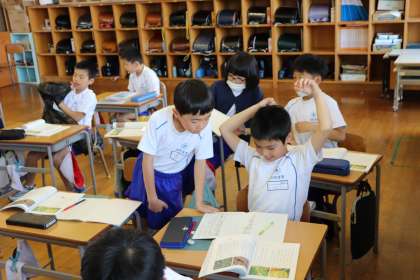 教科書の記述から、問いと答えを読み取り、考えを発表していました。