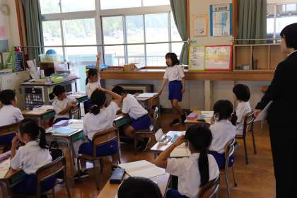 「家でしていること」について、ノートにメモをして発表していました。