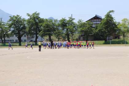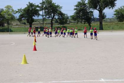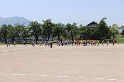 中学年種目「めくって、めくって、モ〜っとめくって 〜卯年の巻〜」の練習をしていました。4年生は3年生をリードしていました。