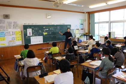 平均の考えを使って児童は発表していました。