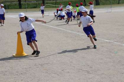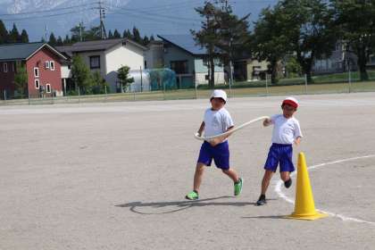 高学年種目「はしって走って、アップアンドダウン」に5年生は初挑戦!