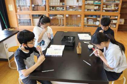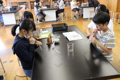 ご飯をすりつぶしした液にだ液を加え、でんぷんの変化を調べる実験です。