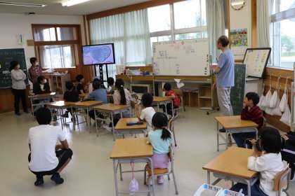 まずは、市図書館で展示していただいた大型掲示物のご意見を見ました。おおまき小学校を卒業した中学生や、おおまき小学校に勤められていた先生などのご意見もあり、児童は喜んでいました。