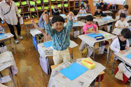 1年図工 ながいひもひもねんどをつくろう