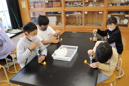 2限、4年生は理科「空気と水」の学習。