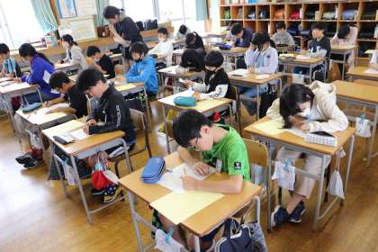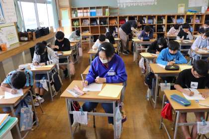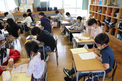 その後、振り返りシートに児童は運動会までの練習やプロジェクト、本番の動きなどの成果と課題を書き込んでいました。