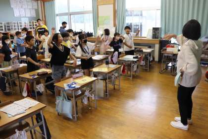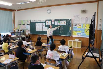 まず、フォニックスで“l”の練習。milk、help、planなどの発音練習をしました。また「今の気分」「曜日」「天気」についても繰り返し発音練習しました。