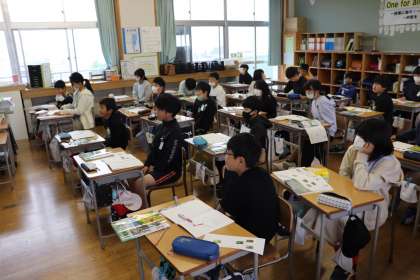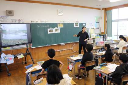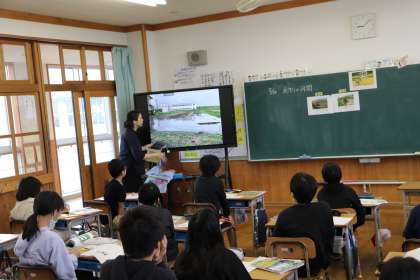 1限、5年生は総合で米作りの学習。