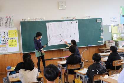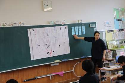 どんな報告文の構成がよいかを教材文をもとに話し合っていました。