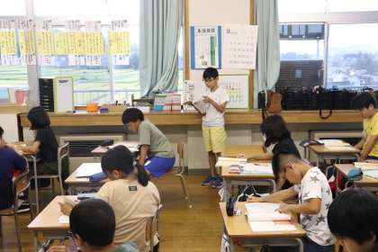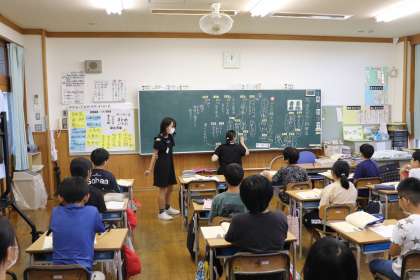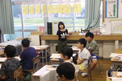児童は物語文を読み返しながら、自分の考えを理由もつけて発表していました。