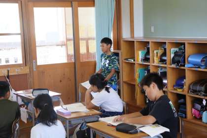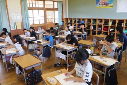 1限、4年生は国語「一つの花」の学習。