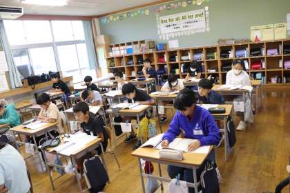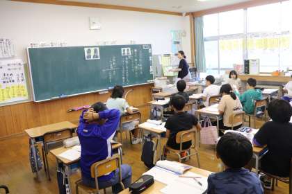 児童は物語文を読み返しながら、自分の考えを理由もつけて発表していました。