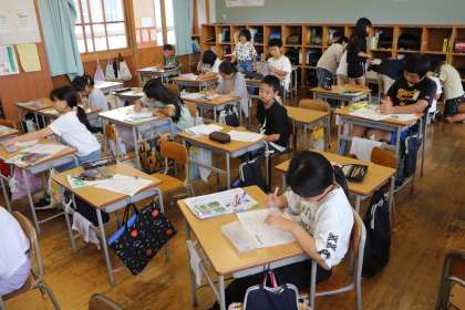 これまでの学習を振り返りながらプリント3枚に取り組んでいました。