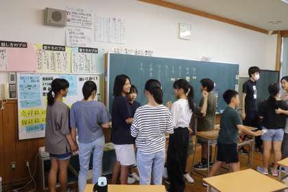 朝活動の時間、6年生は八海中学校部活動体験の希望を考えていました。