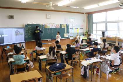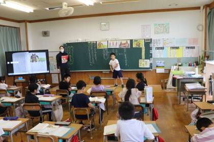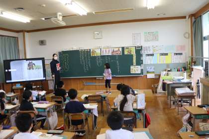 3限、2年生は1限の続きで国語「ニャーゴ」の学習。