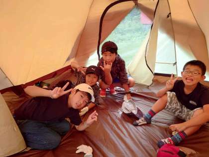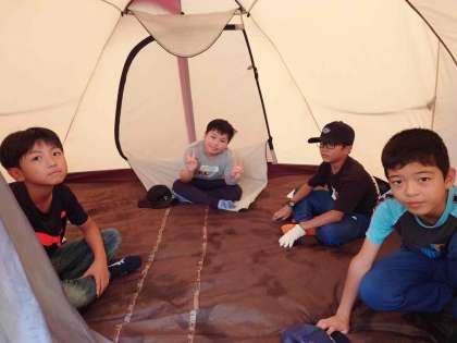 5年 自然体験教室9 テント設営完了1