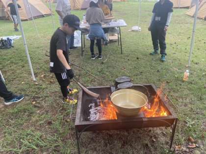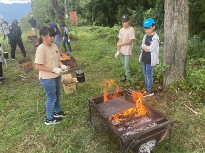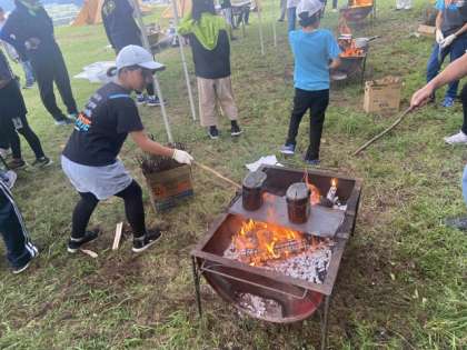 5年 自然体験教室27 飯ごうを加熱し始めました
