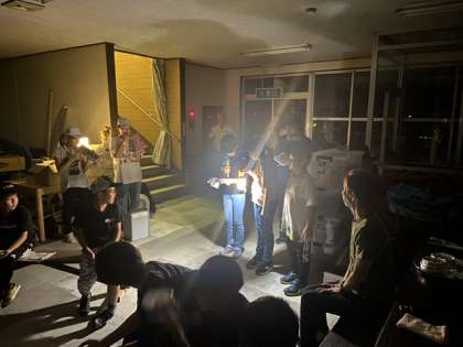 降雨のため、キャンプファイヤーではなく、キャンドルファイヤーになりました。