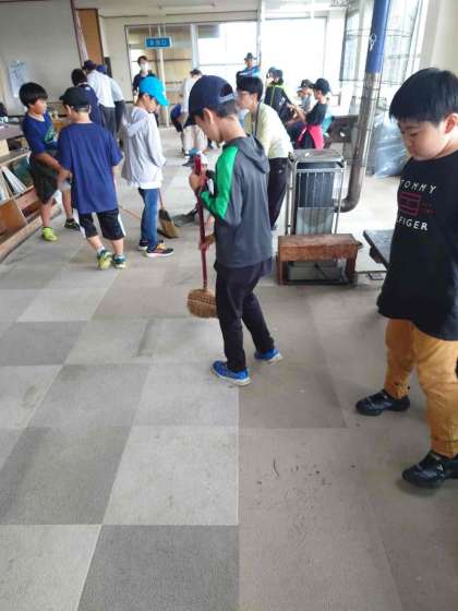 「使う前よりもきれいにする」を目標に、児童は頑張っています。