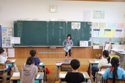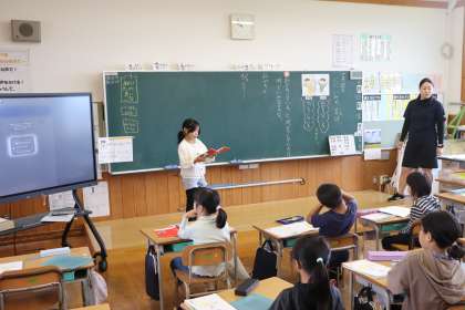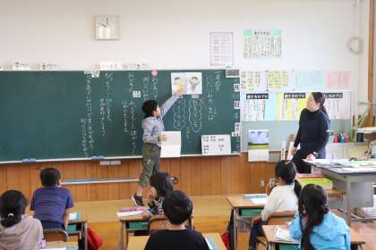 2限、1年生は国語「にたいみの言ば」の学習。この授業の南魚沼市学習指導センターの荒井指導主事の参観授業でした。