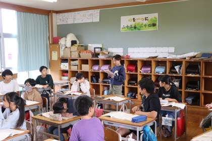 5限、6年生は国語「町の幸福論」の学習。この授業の南魚沼市学習指導センターの荒井指導主事の参観授業でした。