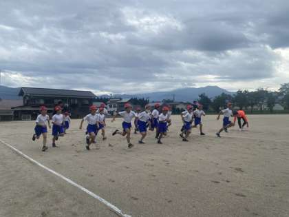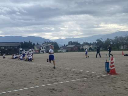 雨が激しくなったので、4年生のスタートはしばらくお待ちください。