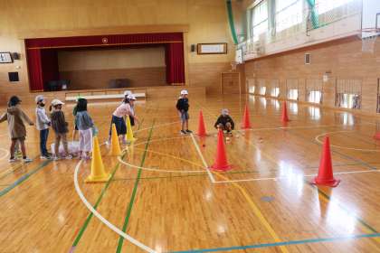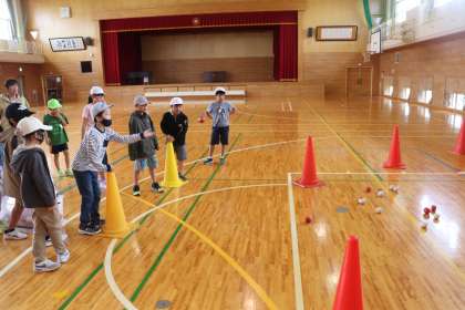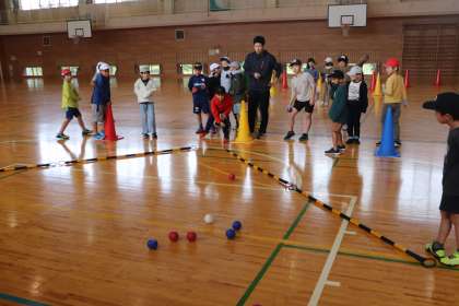 2限、3年生は学活で「ボッチャ」をやっていました。