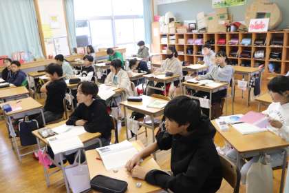 4限、6年生は国語「町の未来をえがこう」の学習。