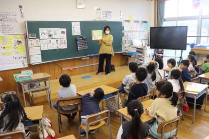 1年生は、読み聞かせボランティアの方から「ひみつのカレーライス」「うんちっち」の2冊を読んでいただきました。