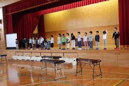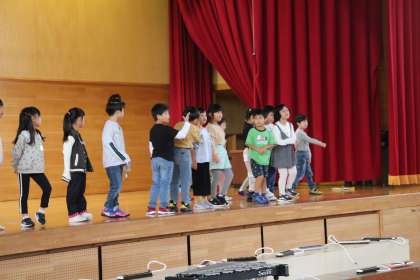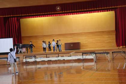 1年音楽 がくしゅうはっぴょうかいのステージれんしゅう
