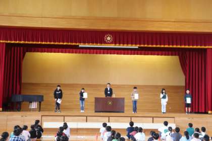 10月のひまわり朝会(児童朝会)〜後期委員長任命式〜