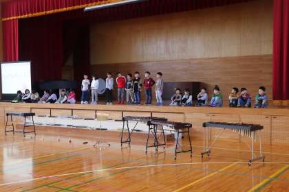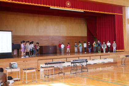 1年生活 がくしゅうはっぴょうかいのステージれんしゅう